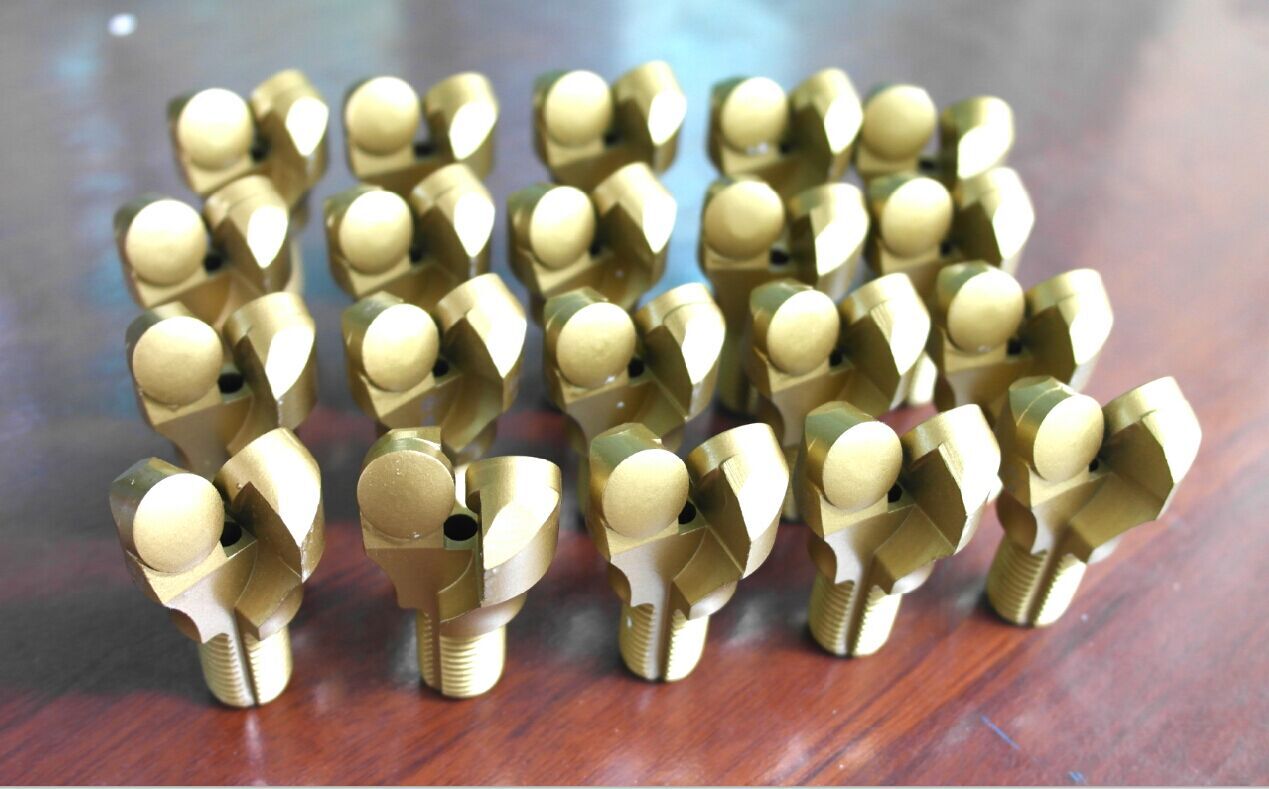 金刚石复合片三翼锚杆钻头以金刚石复合片为主要切削元件,以刮削剪切原理进行岩层破碎,适用于软—中硬地层的钻进,且在克服不完整地层钻进时有更好的优势。金刚石复合片不取心钻头通过充分利用金刚石复合片的高耐磨性和高抗冲击性,使其具有高寿命、高时效、高性价比等优点。